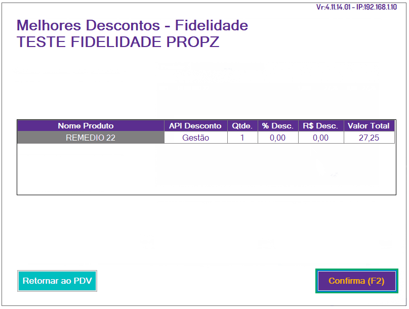 8. Irá abrir os Melhores Descontos, clique em Confirmar ou pressione a tecla F2.