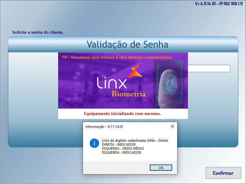 - Caso queira Visualizar a(s) mão(s) e o(s) dedo(s) cadastrado(s) pressione o F8 e irá listar de digitais, clique em OK.