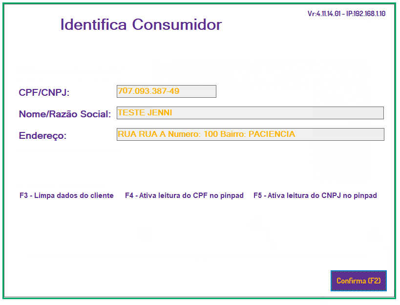 5. Identifique o consumidor e clique em Confirmar ou pressione a tecla F2.