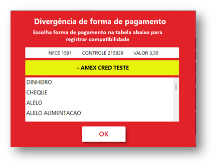 1. Em nosso PDV, quando uma nova forma de pagamento é identificada, aparecerá a seguinte tela: