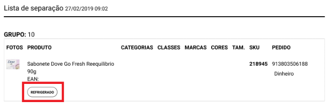 Aqui, os produtos estão separados apenas por grupos e não por entregas. A visualização de produtos por entrega pode ser acessada pelo ícone das listagens ou ao bipar o código de barra da entrega desejada no relatório de separação.