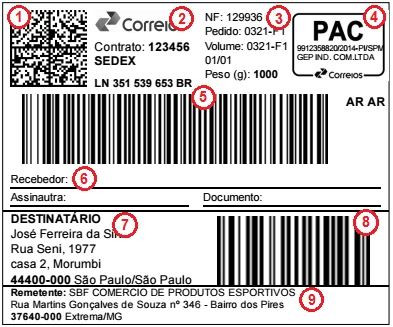 Na etiqueta, são carregadas todas as informações necessárias para que a transportadora consiga realizar uma entrega com sucesso, incluindo informações do pedido, do cliente e da loja: