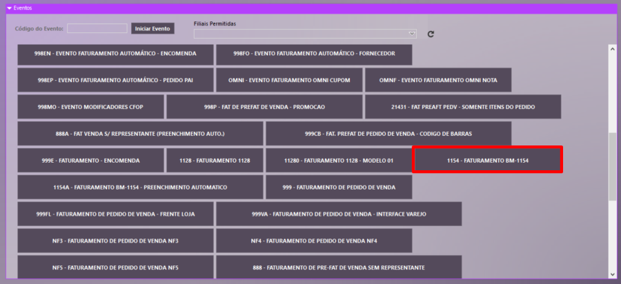 1.Pelo caminho Vendas > Movimentações > Evento 1154 – Faturamento BM-1154;