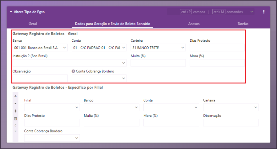 Os campos abaixo possuem validação referente à existência na base de dados, ou seja, caso seja informado um valor que não existe na base de dados nestes campos, o sistema retornará no campo mensagem as informações: