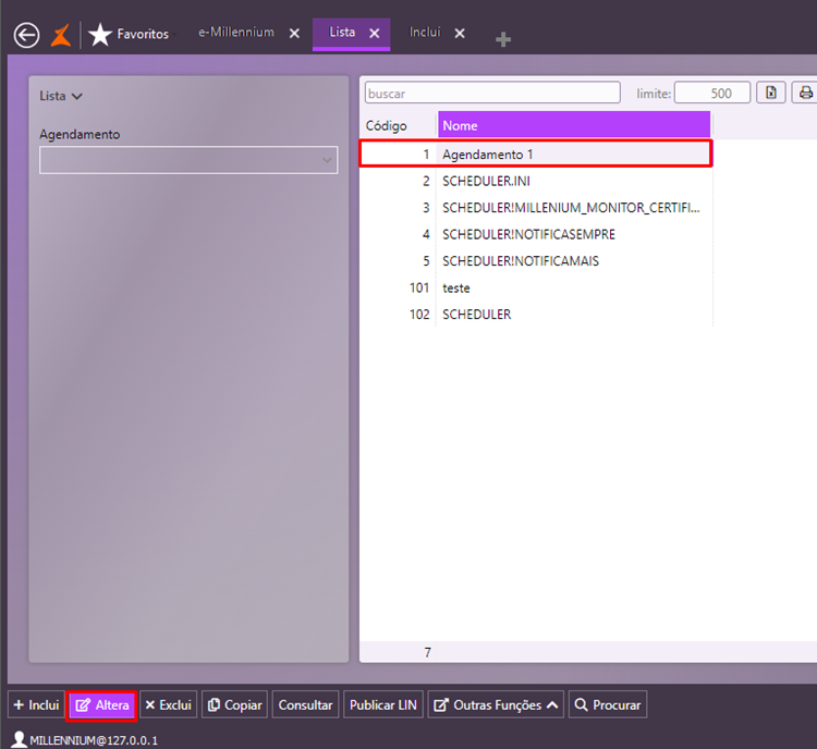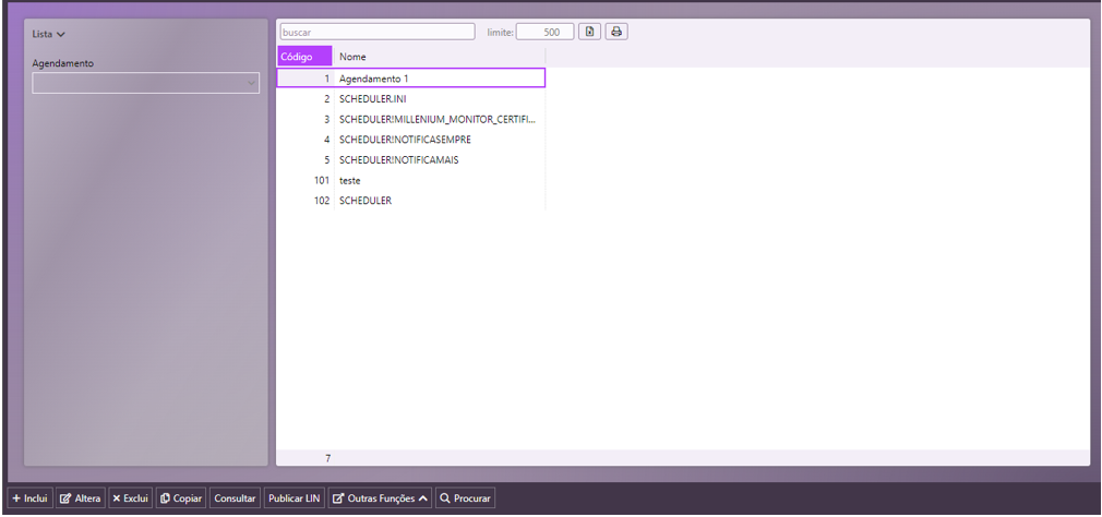 A tela de lista irá apresentar todas os registros encontrados quando o operador acionar o link Procurar.