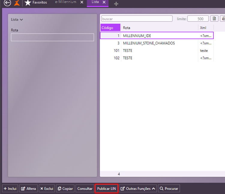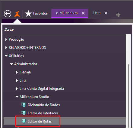 Este Editor foi criado para facilitar a edição dos arquivos .lin, criado recursos para agilizar a edição das Rotas. As rotas são os caminhos pelos quais o operador percorre no menu do sistema para localizar as rotinas e telas do e-Millennium