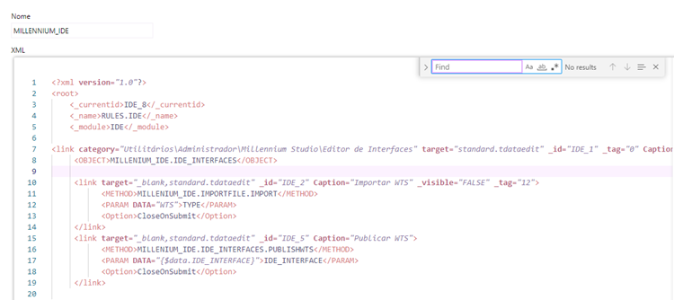 Nesta tela, temos o campo XML que é a linguagem de marcação utilizada com regras para formatar a documentação de forma que sejam facilmente entendidos.