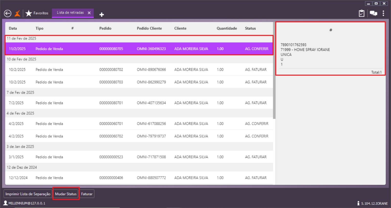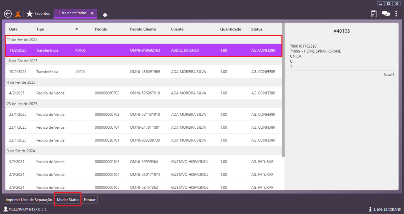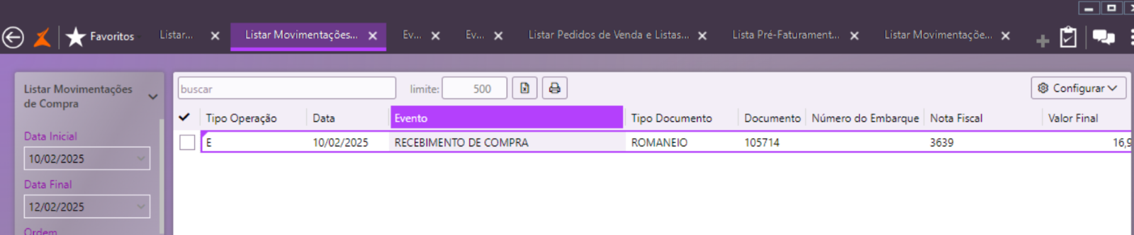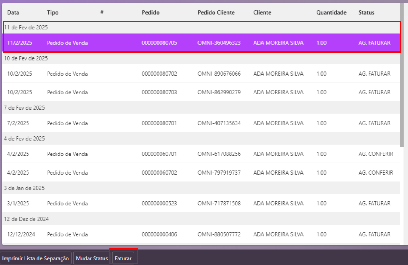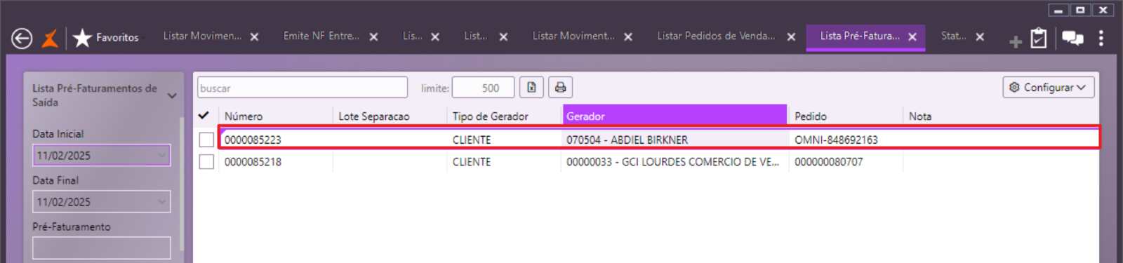 A partir desta conferência, pré-faturamento fica disponível para conferência e emissão da NF de Venda