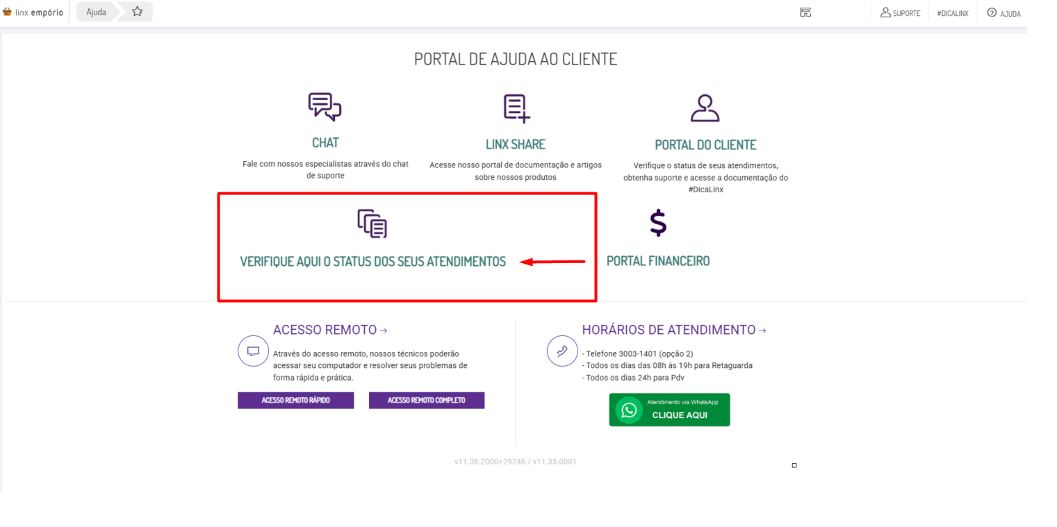 Você selecionará VERIFIQUE AQUI O STATUS DOS SEUS ATENDIMENTOS