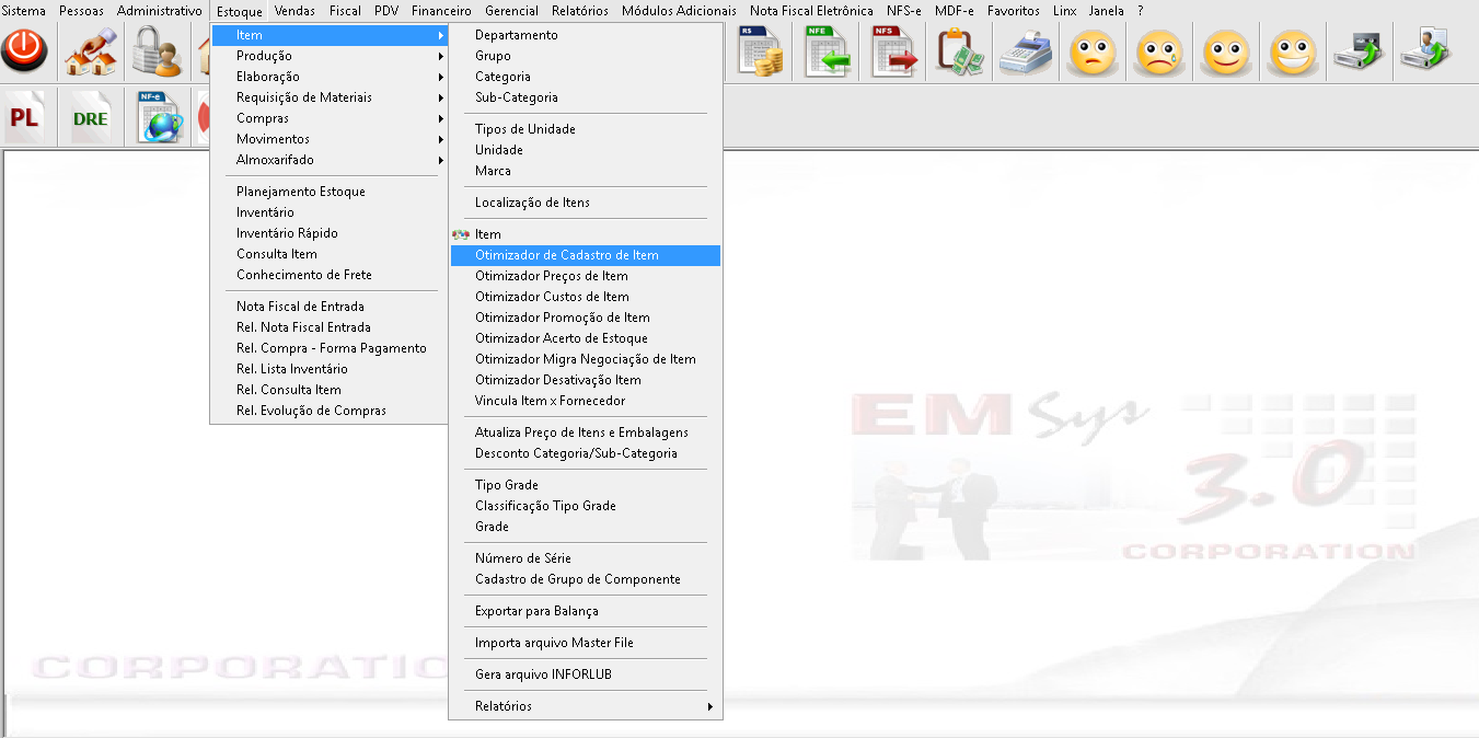 Estoque>item>otimizador de cadastro de item, onde esta tela possui algumas funções para preenchimento dos cadastros veja as telas abaixo.