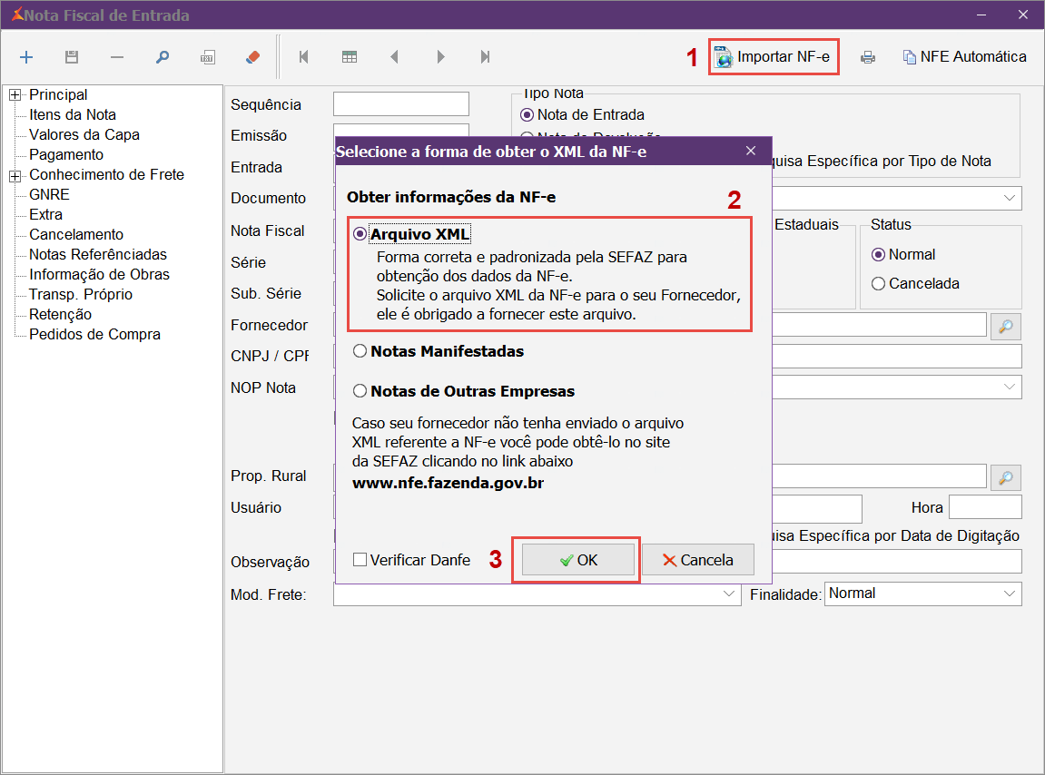 3. Navegue pelas pastas e localize o XML a ser importado, seguindo as etapas para concluir a importação e clique em OK.