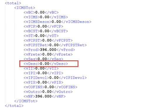 Na tag vDesc do XML não deve haver nenhum valor informado. Se houver valor, a nota não será processada nessa rotina.
