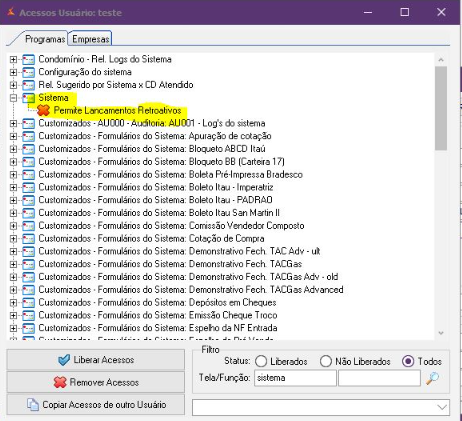 Se caso o usuário não estiver com o acesso abaixo habilitado e na tela de "Alterar data de fechamento" com parâmetro habilitado. Então não será permitido inclusão de lançamentos que ultrapassam os dias informados no parâmetro.