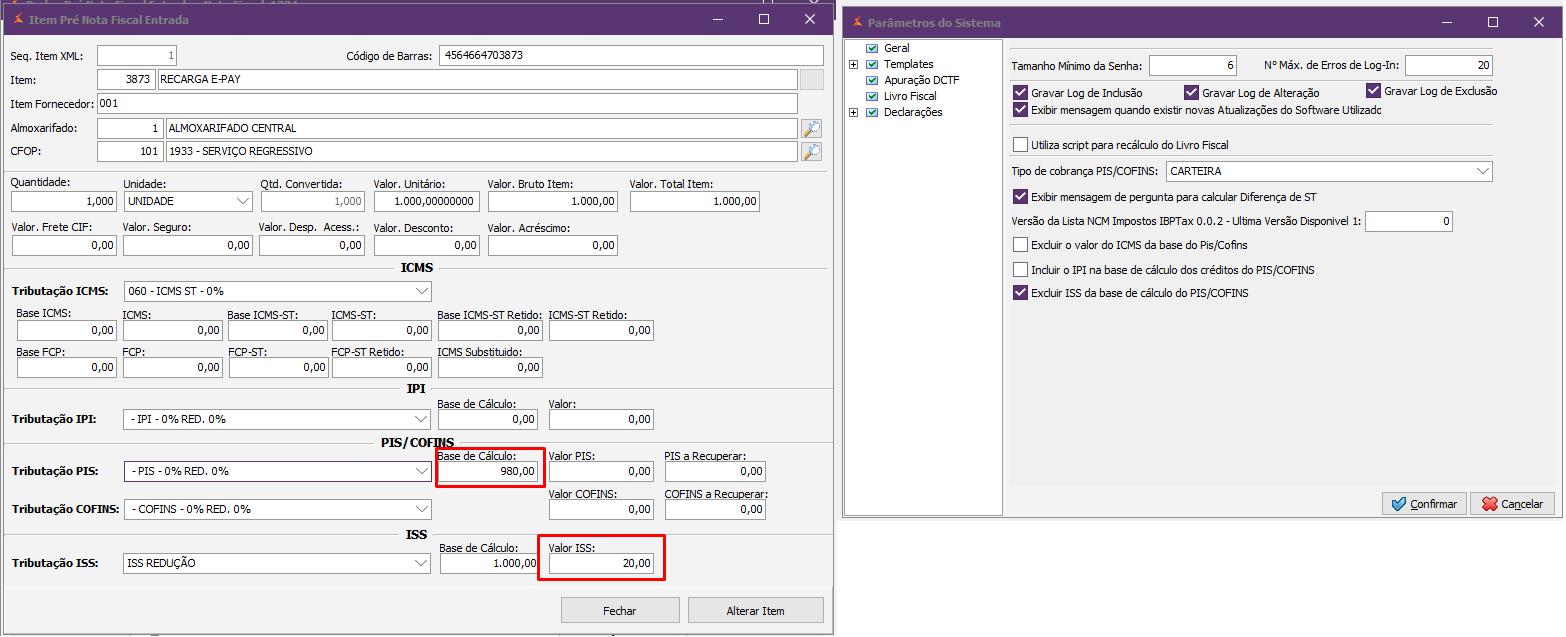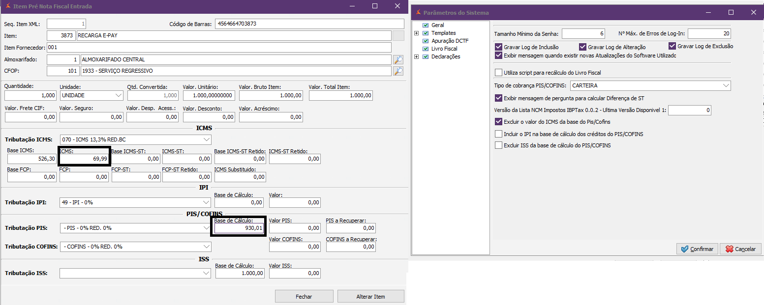Realizados ajustes no cálculo do PIS/COFINS na tela de pré-lançamento da nota fiscal.
