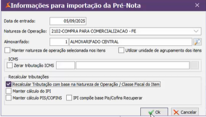 - A tela de importação de XML da pré-nota foi padronizada por meio da implementação de novas flags, garantindo consistência com a tela de importação da nota fiscal de entrada.