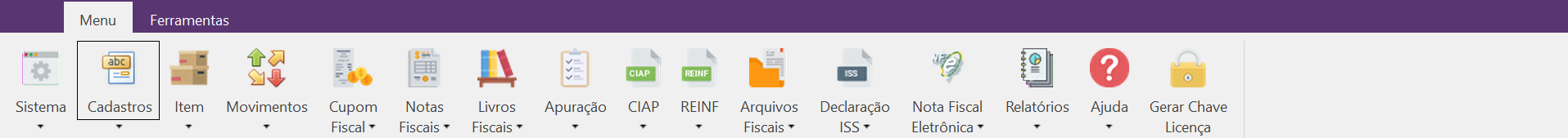 EMSys Fiscal | Menu | Cadastros