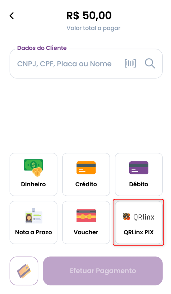 Venda com Integração QR Linx e PIX