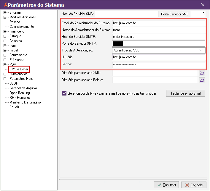 • É necessário que o envio de e-mails esteja configurado no EMSys em Parâmetros de Sistema → SMS e E-mail. Essa configuração garante que a ferramenta envie notificações e comunicações automáticas, com os links para cotações, de forma eficiente e sem falhas