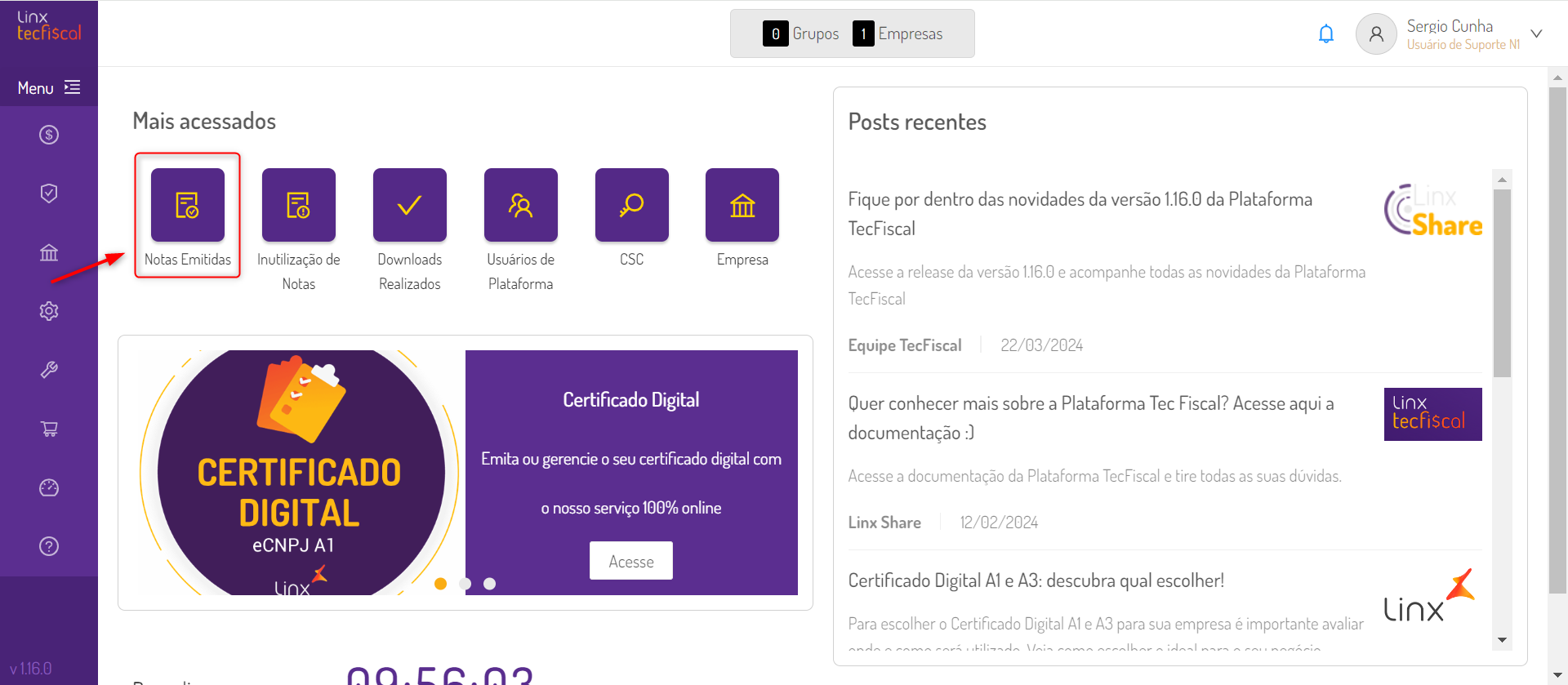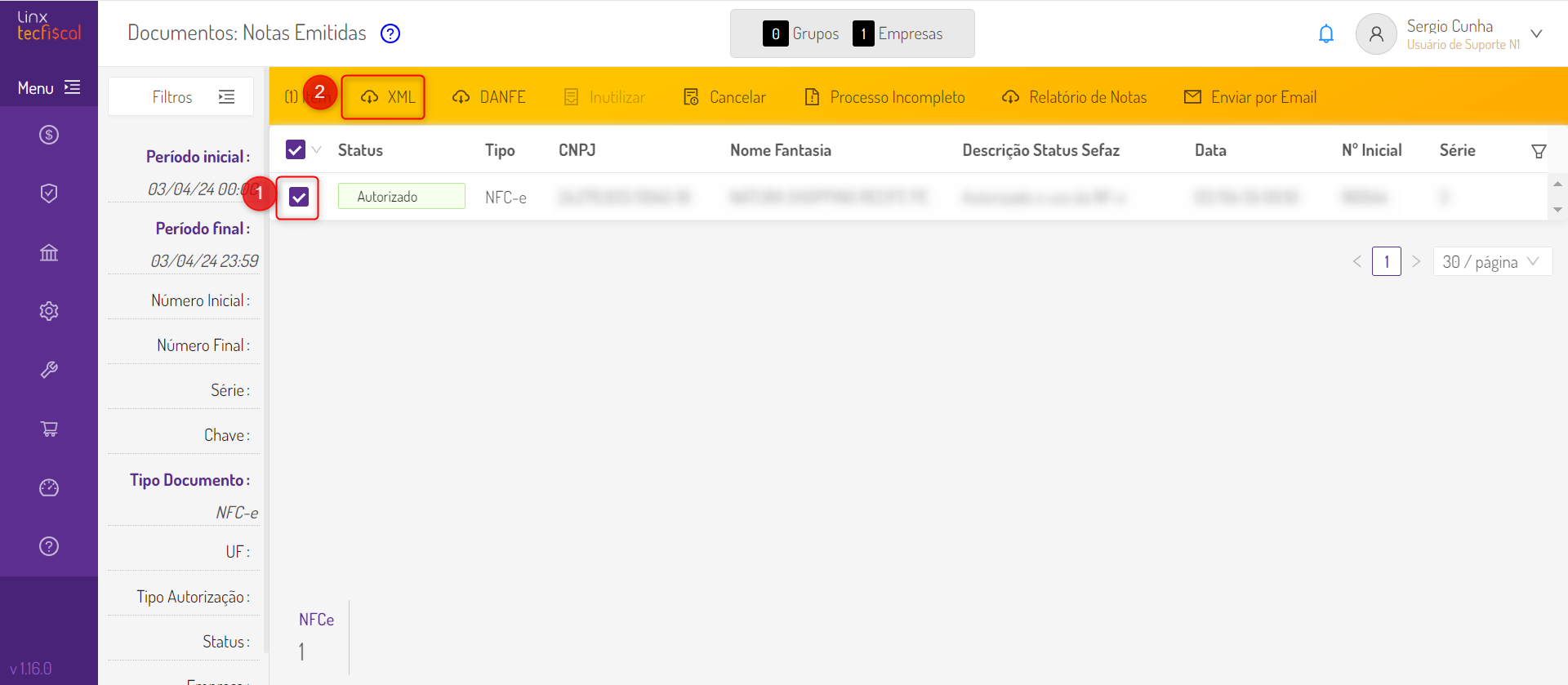 Solução: Para realizar o download do XML de uma nota, realize os passos a seguir: