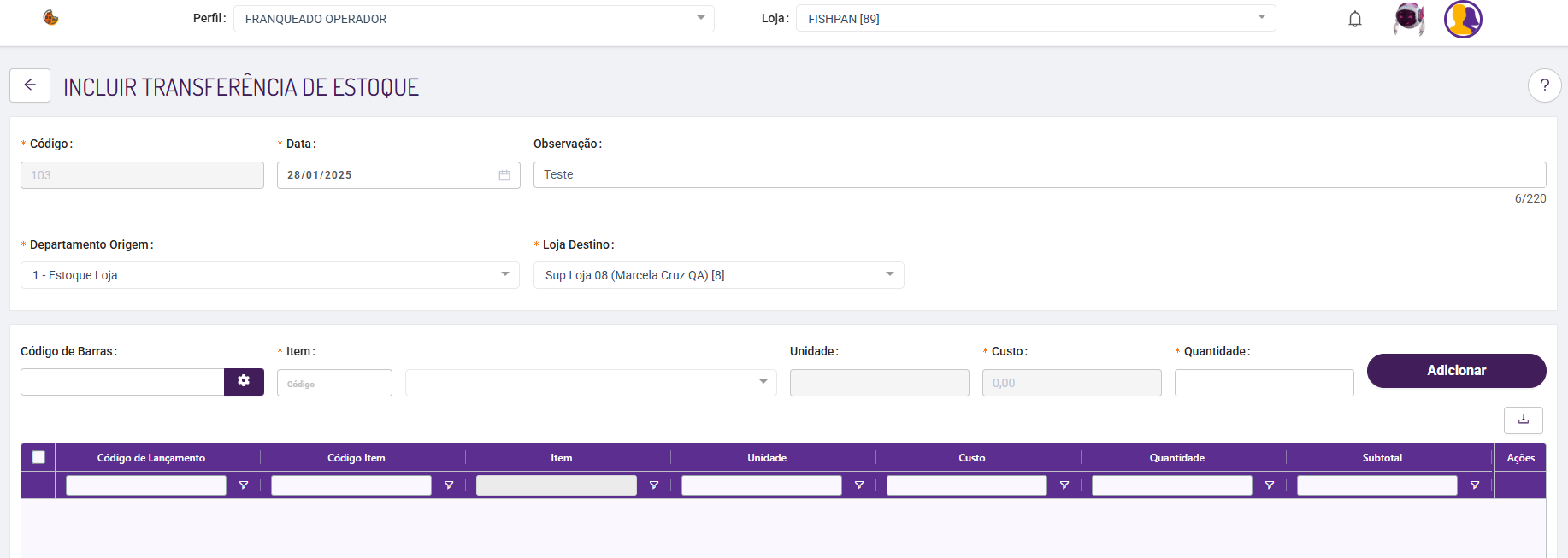 Descrição:  Para atender lojas que trabalham com transferências de produtos com código de barras gerada por balanças, criamos o recurso de importação dos dados pelo leitor do código de barras, assim o sistema vai reconhecer o produto e quantidade pelo código. A informação será apresentada na tela agilizando e facilitando o processo.