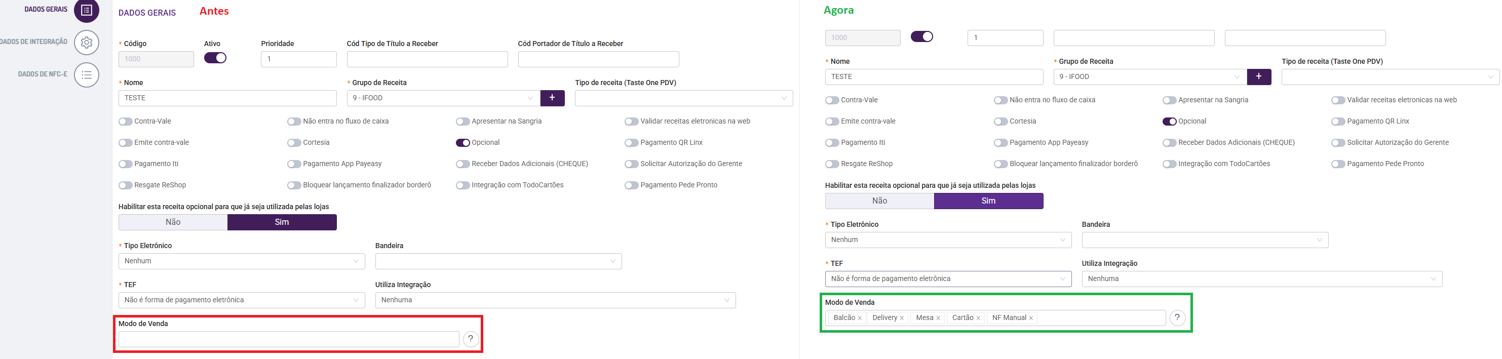 Descrição: Ao realizar a importação de receitas não era adicionado as vendas ao campo "Modo de venda" nas novas receitas
