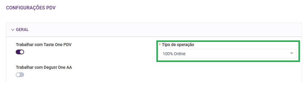Descrição: Agora ao habilitar o uso do Taste One PDV no cadastro da loja passa a ser obrigatório a inserção no novo campo "Tipo de Operação". Saiba mais