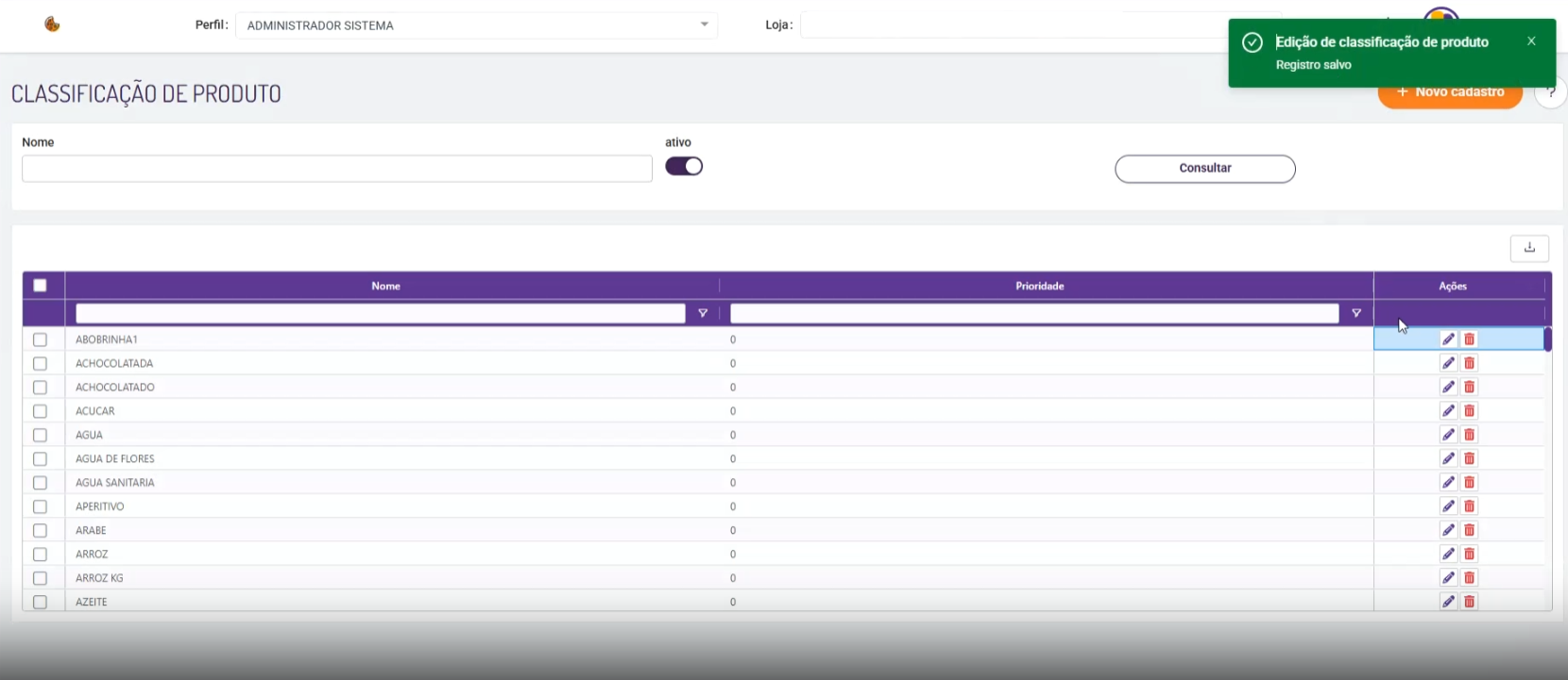 | FOOD-43700 | Classificação de loja - Notificações | CORREÇÃO | Descrição: Notificações de sucesso ao cadastrar uma classificação, editar e excluir foram perdidas Solução: Anteriormente, as mensagens de sucesso ao cadastrar, editar ou excluir registros não estavam sendo exibidas corretamente, o que prejudicava a experiência do usuário e a confirmação das ações realizadas. |