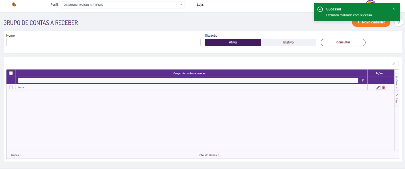 | FOOD-27138 | Tela de Grupo de Contas a Receber | CORREÇÃO | Descrição: