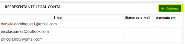 Os e-mails registrados para cada um dos representantes precisam ser distintos.