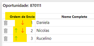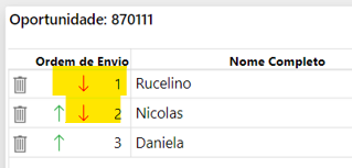 • Alterar a ordem de assinatura entre representantes (ao clicar nas setas em ordem de Envio para mudar a posição na sequência 1 > 2 > 3);