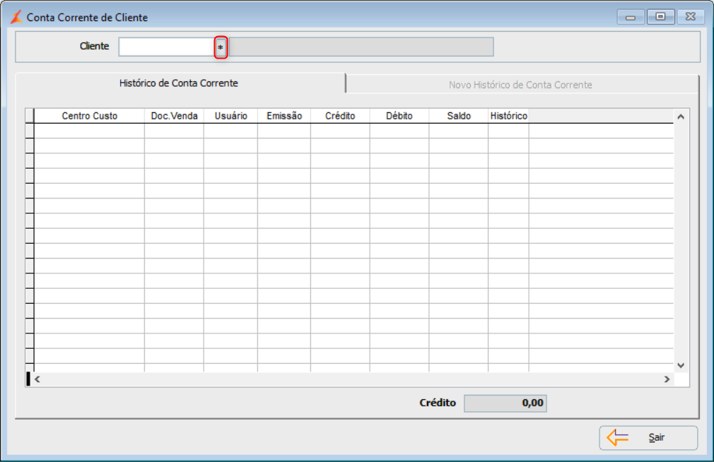 - Clique na aba Novo Histórico de Conta Corrente;