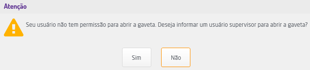 Caso o usuário não tenha permissão para abrir a gaveta, será exibido um alerta.