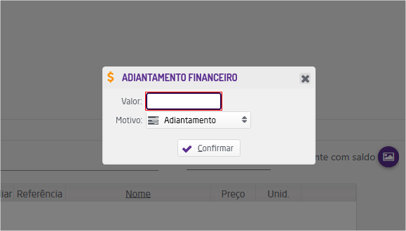 Para casos em que há a necessidade de envio de produtos a assistência técnica, na qual é preciso solicitar um valor sinal ao cliente como garantia, é possível configurar o sistema para realizar um adiantamento financeiro simples. Porém, para que esteja disponível, é necessário entrar em contato com o Suporte Técnico Linx Microvix para correta parametrização.
