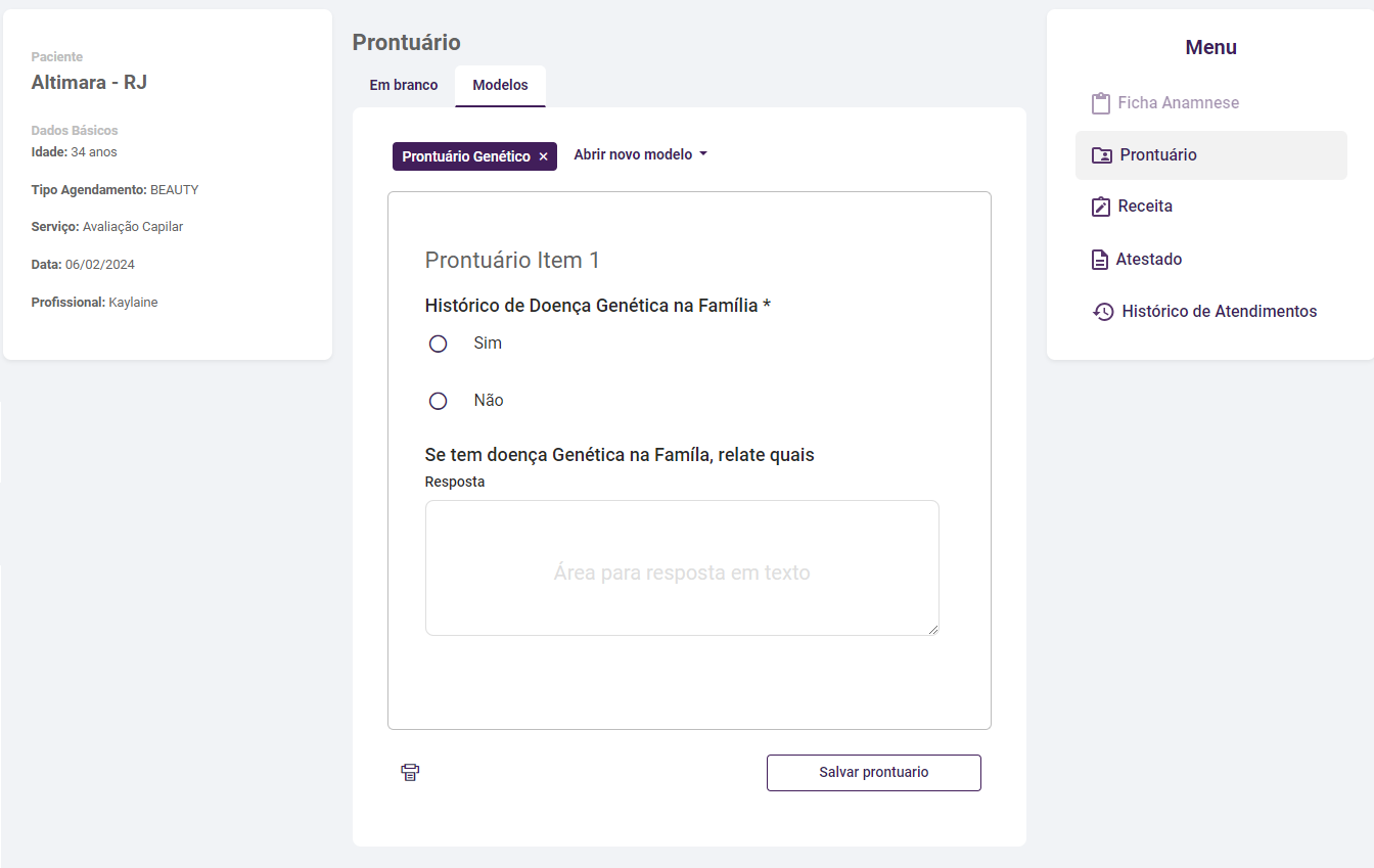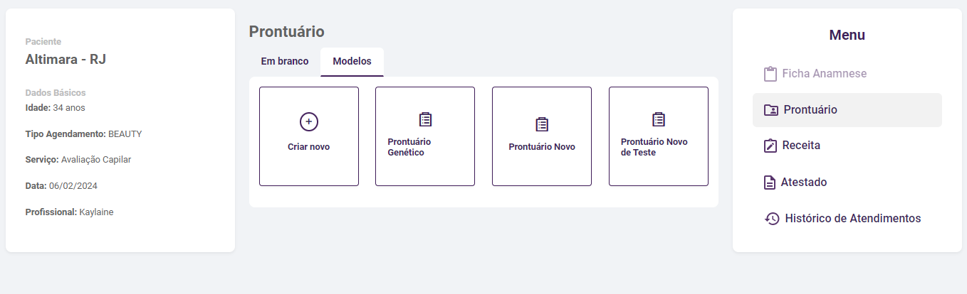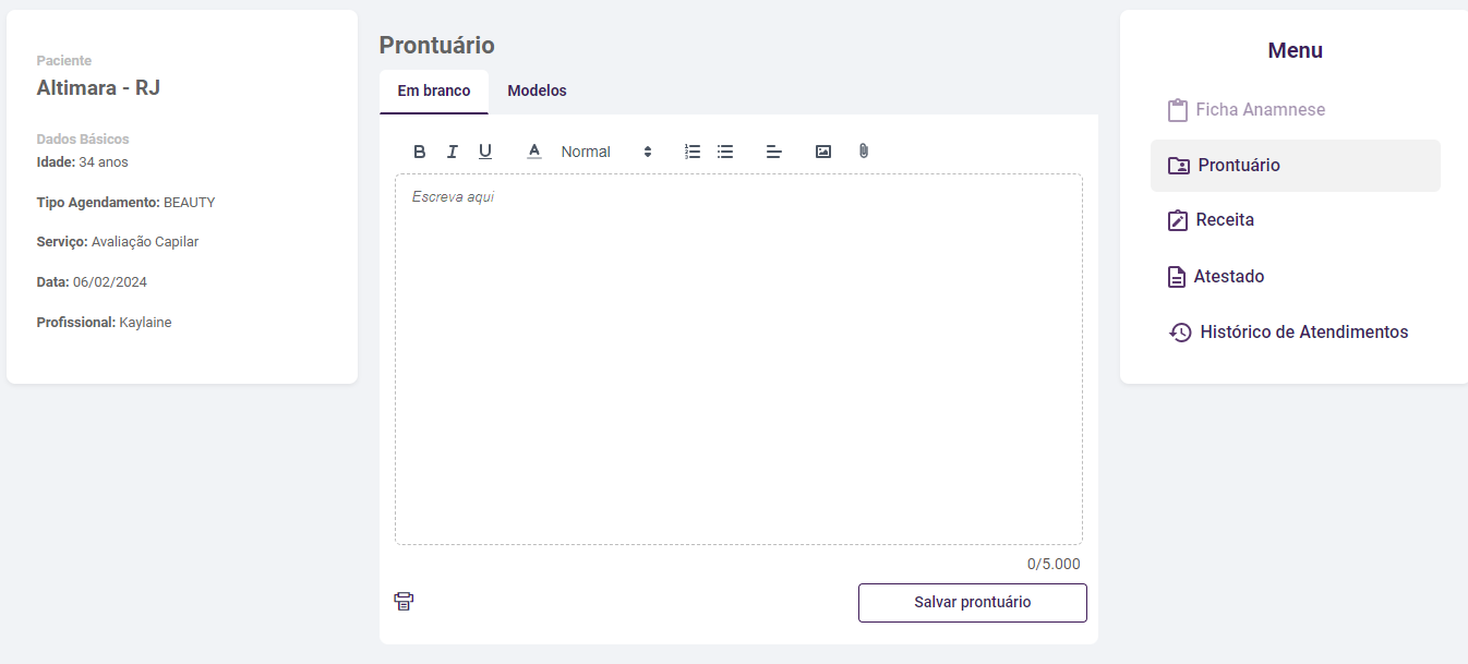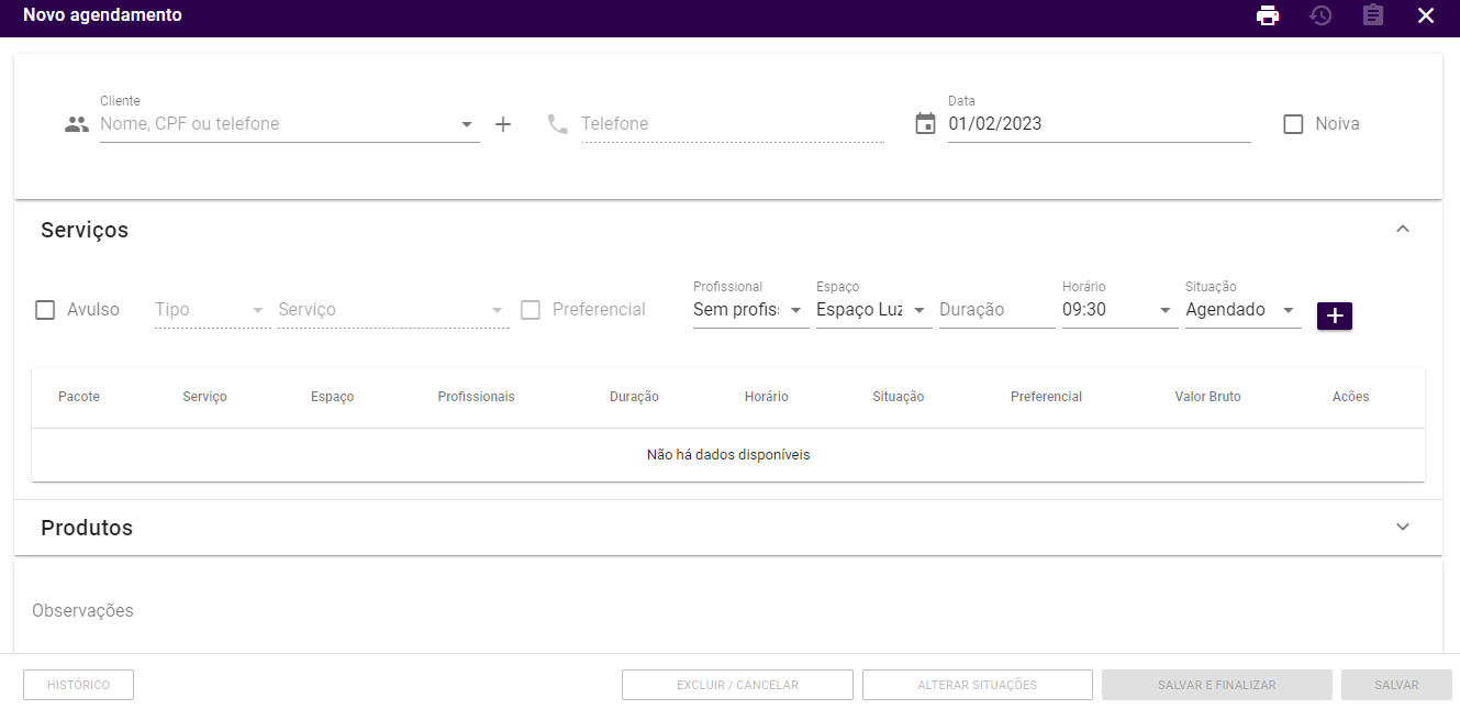 Para iniciar um agendamento é necessário clicar sobre o horário desejado e disponível na agenda, desta forma será exibida a página para preencher os dados necessários. Ou no menu lateral da direita clicar sobre o .