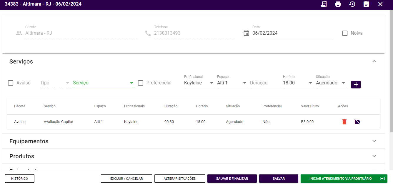 Esta rotina permite cadastrar os agendamentos da unidade através de comandas.