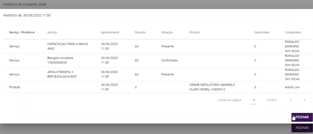 - Para utilizar esta rotina é necessário que a permissão "Finalizar comandas" disponível em Empresa > Segurança > Configurar Usuários > Listar > Configurar Permissões > Grupo Serviços (Novo) > Subgrupo Agenda esteja marcada;