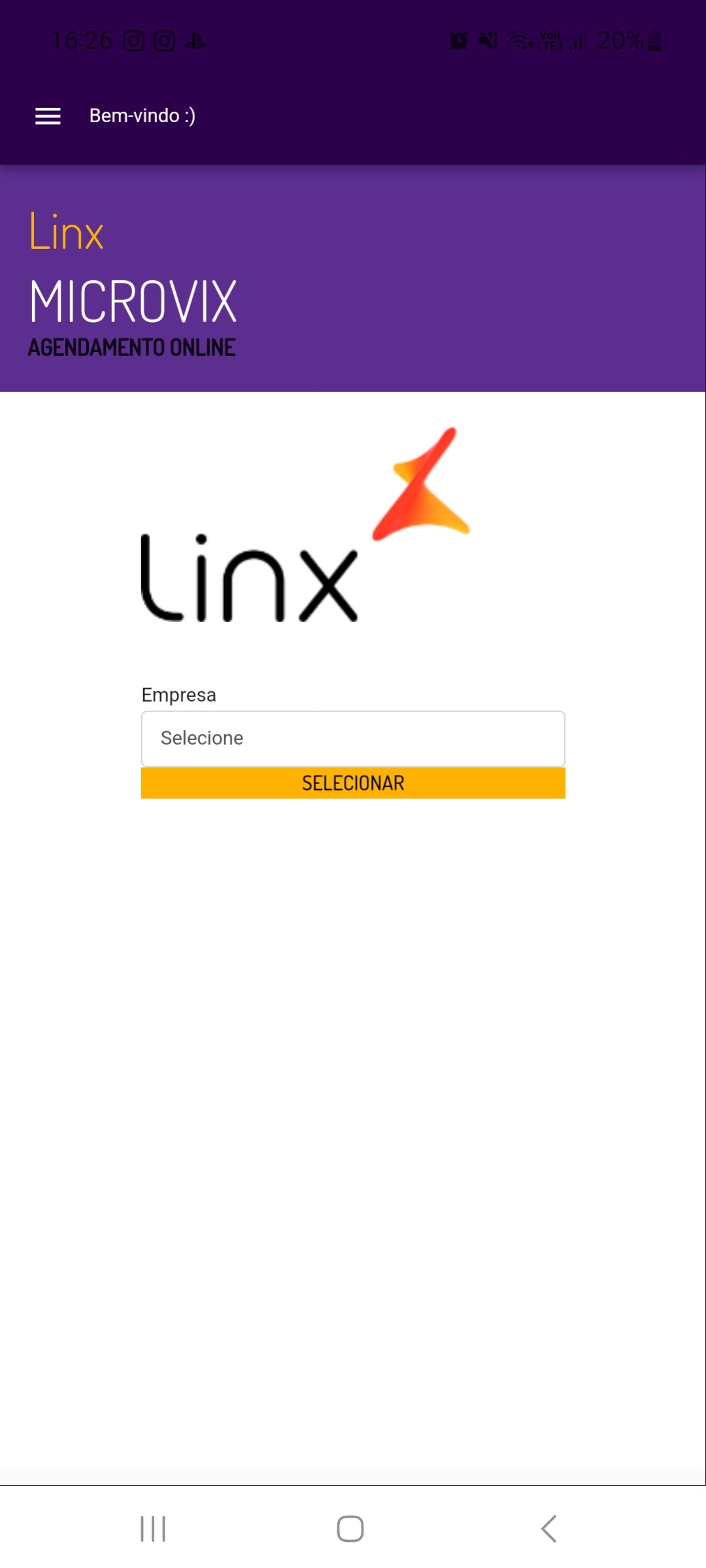Ao acessar a rotina pelo aplicativo instalado, será exibida a página inicial para selecionar a unidade da empresa que estará realizando os agendamentos.