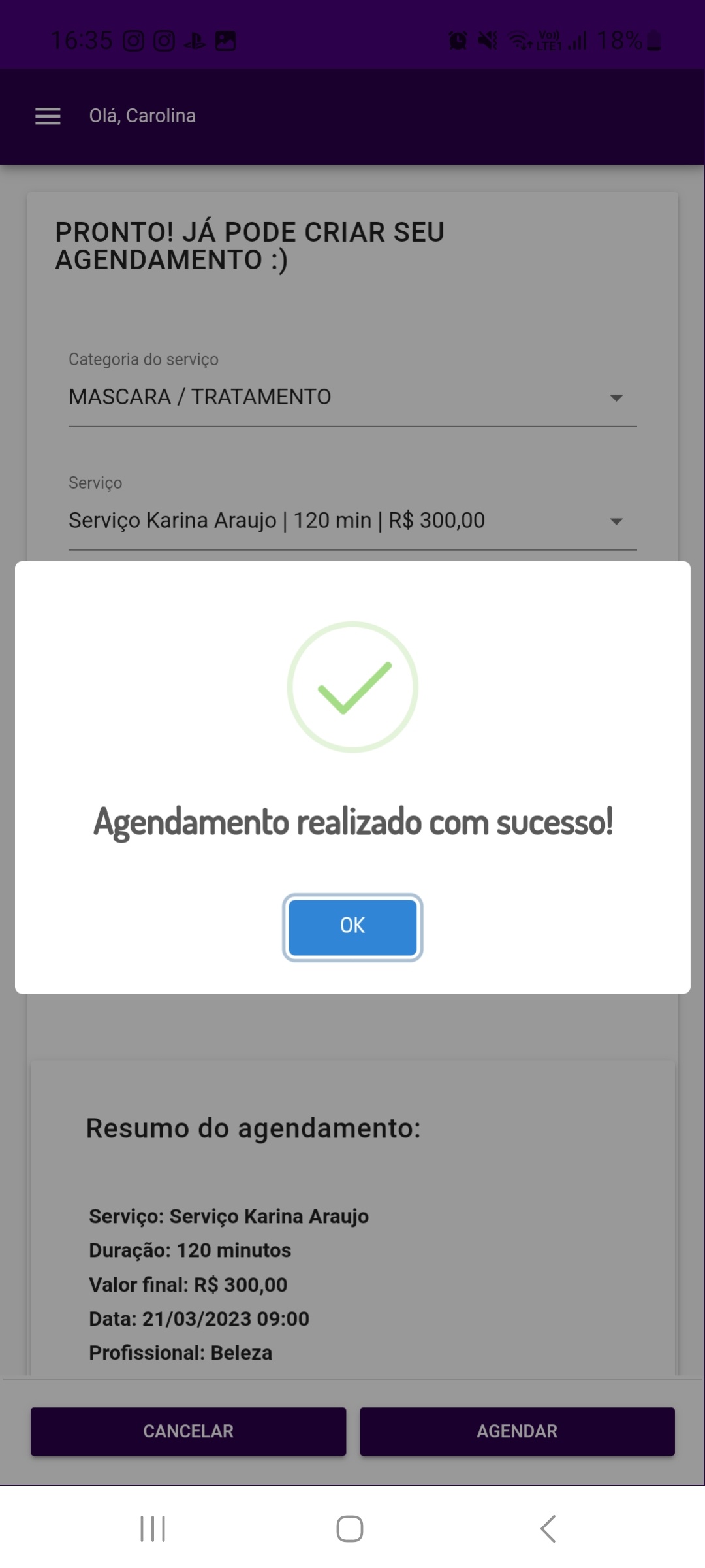 Todos os agendamentos realizados no aplicativo serão exibidos na Agenda 2.0 do Microvix Beauty.