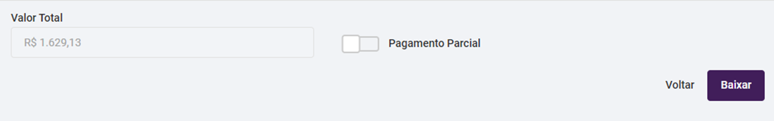 Após definir entre valor total ou parcial, clique no botão "Baixar", para finalizar o processo.