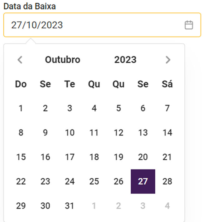 Por padrão, o campo exibirá a data atual (do dia). No entanto, é possível alterar a data manualmente, seja digitando no campo ou selecionando uma nova data usando o calendário que aparece ao clicar no campo.