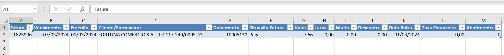 Após concluir a baixa das faturas, seja de forma individual ou em lote, você terá a opção de fazer o download dos dados das faturas em uma planilha.