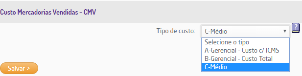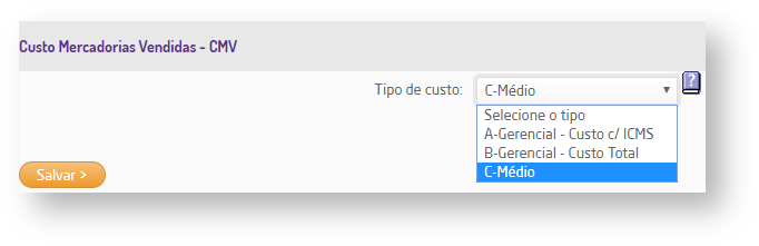 É possível definir o tipo de custo que deve ser utilizado para esta baixa. Por padrão o sistema vem configurado com o tipo "C - Custo médio" que é o mais indicado principalmente quando a empresa realiza entregas fiscais.