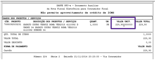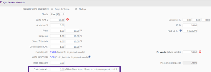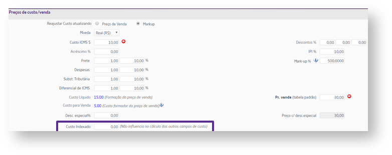 | Custo Indexado = Valor do produto + IPI + royalties. |