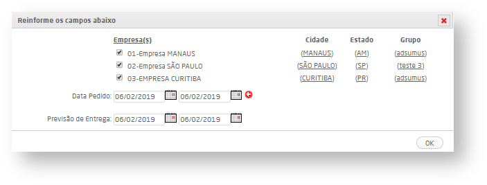 Reinformar empresa(s) e/ou Reinformar data(s)
