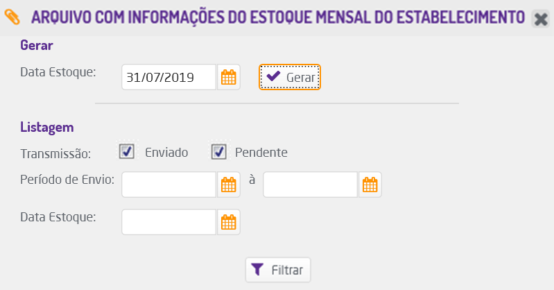 Caso todos os arquivos forem enviados corretamente será exibida a seguinte mensagem “Arquivos com Informações do Estoque Mensal do Estabelecimento transmitidos com sucesso”. Se nem todos os arquivos forem enviados com sucesso, será exibida uma mensagem com o número arquivos pendentes.