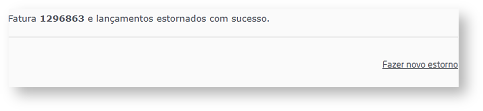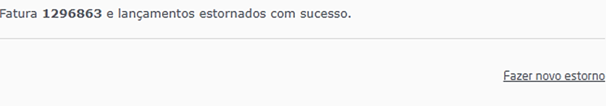 Será exibida uma mensagem de confirmação de que a fatura foi estornada com sucesso.