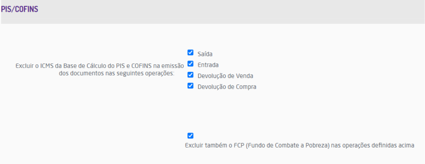 Parâmetros para exclusão de ICMS e FCP, da Base de cálculo do PIS e COFINS