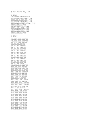 Azion 29/10/2025 31.217.128.192/29 | Azion 29/10/2025 2a02:6ea0:f212::/64 |