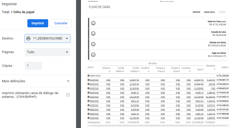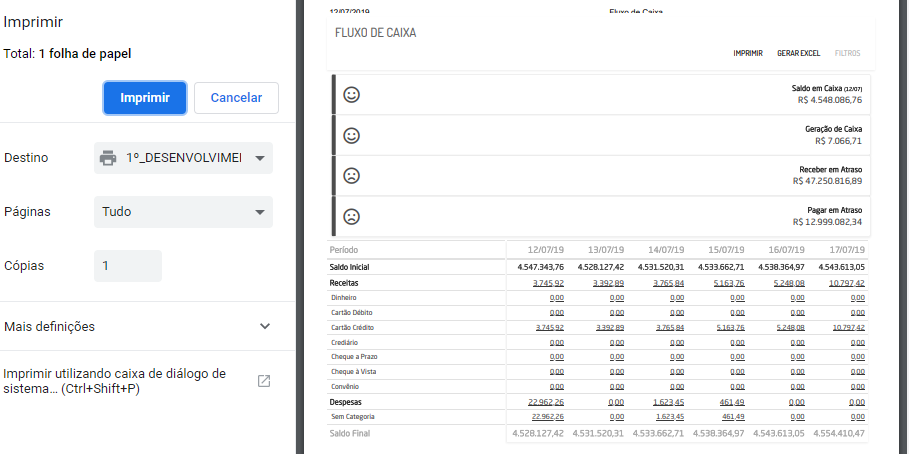 - Saldo Final: será apresentado o resultado do seguinte cálculo: Saldo Inicial + Saldo Final - Despesas.