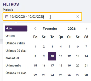Também é possível realizar a filtragem, utilizando a área de filtros (localizada no topo da tela) entre um intervalo de datas específico, assim trazendo os valores referentes a esse intervalo para a visualização e interação com o usuário.